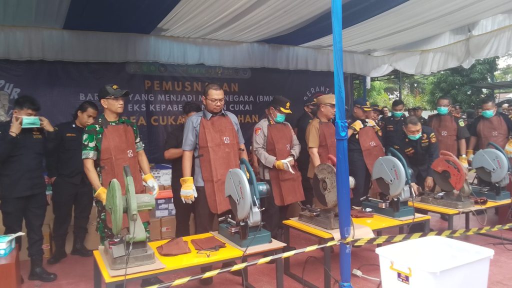 Adapun barang yang dimusnahkan meliputi 2.118.090 batang rokok ilegal, 25.200 mil minuman mengandung etil alkohol (MMEA), 1.094 unit handphone berbagai tipe, 30 unit suku cadang handphone, 30 unit pelindung layar (screenguard), serta tiga paket suku cadang handphone lainnya.