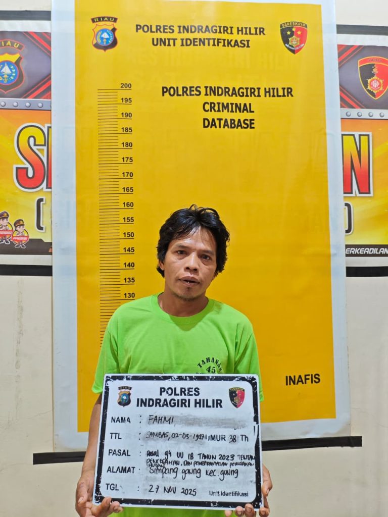 Meynewsreport.com – Indragiri Hilir, 27 November 2025 — Polres Indragiri Hilir resmi menetapkan enam orang sebagai tersangka kasus tindak pidana di bidang kehutanan (illegal logging) setelah para pelaku tertangkap tangan saat melakukan penebangan serta pengolahan kayu di kawasan hutan konsesi PT. Satria Perkasa Agung (SPA). Penetapan tersangka dilakukan pada Kamis, 27 November 2025 sekitar pukul 10.30 WIB.