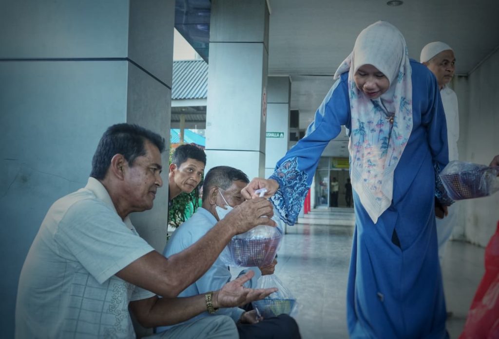 Dalam kesempatan tersebut, Wabup Yuliantini menyapa langsung para pasien dan keluarga yang sedang menunggu waktu berbuka puasa, sekaligus memberikan semangat serta doa agar mereka segera diberikan kesembuhan.